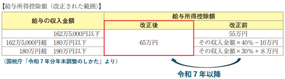 令和7年度税制改正により、給与所得控除と基礎控除のルールが変わり、
